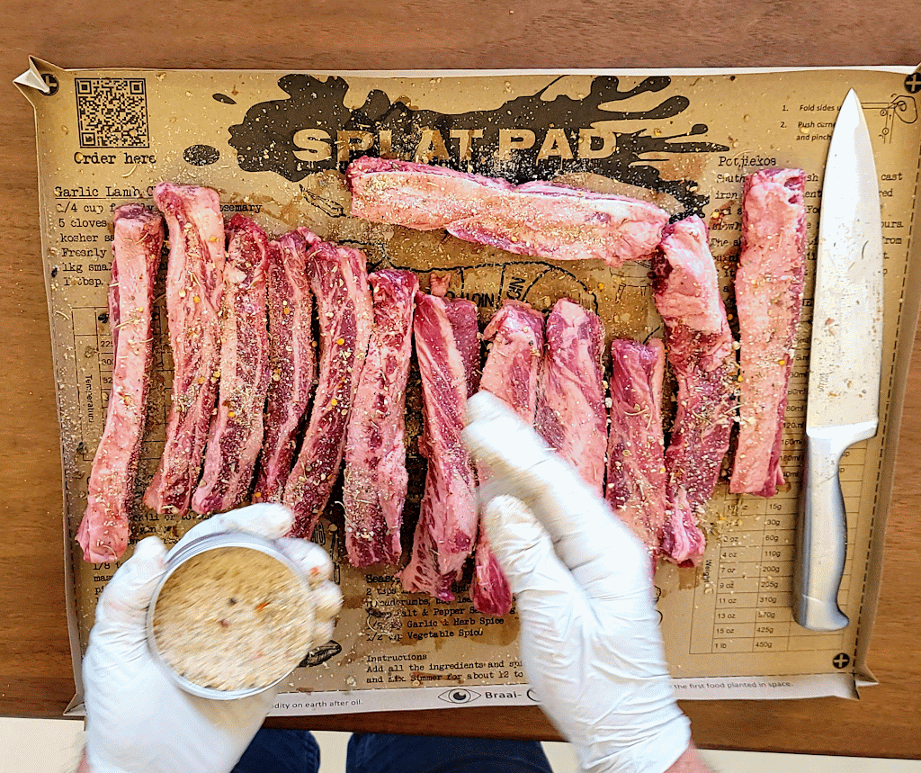 This allows for enough space to prepare any food and cut, slice, fold and spice it liberally with your favorite rubs, savory combinations and sauces WITHOUT making a mess on the table around your working area.