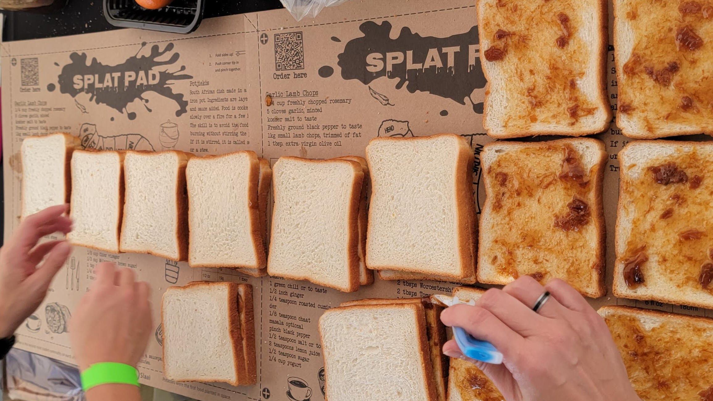 Splat pad 可用於供應小吃、燒烤肉、美味小吃和熟食。-Cut your servings at the table.